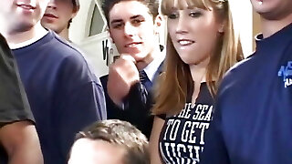 Filthy Busty Redhead Has Fun With a Submissive Chained Stud, Kicking His Plums And Teasing His Dick