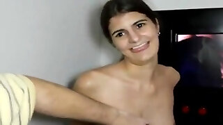 MILF fellates big cock in gloryhole while her cuckold hubby films her on camera