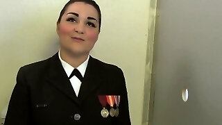 Annika Adams cute Latina in a dressing bedroom finds herself face to face with big white cock glory-hole Joe Suck.