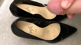 Cumming on Black Satin Heels and her Stockings