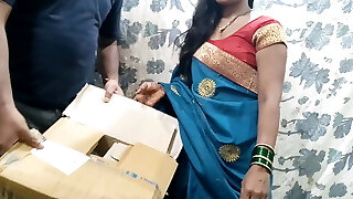 indiano desi torrido cameriera in saree con polverizzato da titolare-sperma il suo behand-ampio seni