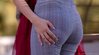 Taking a walk alluring Aiden Ashley is prepped to go girl-on-girl with a strapon