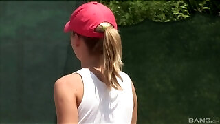 Sporty hottie Helga blows and gets poked on a tennis court
