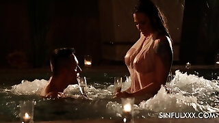 Curvy Busty Dark Haired MILF Gets Drilled & Jizzed After a Hot Massage By the Pool