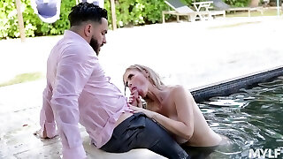 Having fun in the pool busty MILF doesn't mind switching to mischievous hump