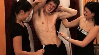 Asian Woman Draining Her Strap-on Sucked Licking Other Woman Pussy On The Chair In The Classroo