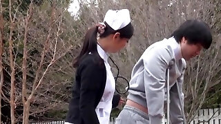 Hardcore outdoor fucking with a Japanese nurse dressed in lingerie
