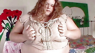 BBW MILF in blue sundress show her humungous tits and masturbating