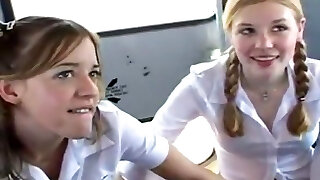 Teens schoolbus fortunate day