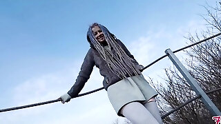 une écolière allemande aux cheveux foncés avec des tétons percés aime faire du vélo et baiser-fest à l'air frais!