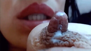 Sucking long milky nipples. WET and MILKY