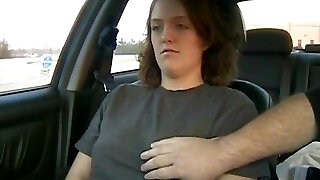 счастливчик получает шанс просверлить тугую киску сексуальной грудастой цыпочки на заднем сиденье ее сломанной машины