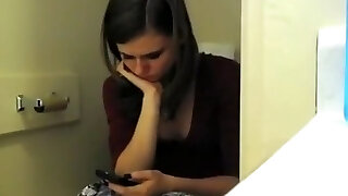 неопытный любитель с толстыми сиськами заходит в туалет, чтобы провести модную сантехнику сзади через дырку для траха славы